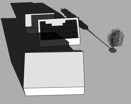 Mit dem Programm GoogleSketchUp lässt sich die Verschattung sehr gut demonstrieren.